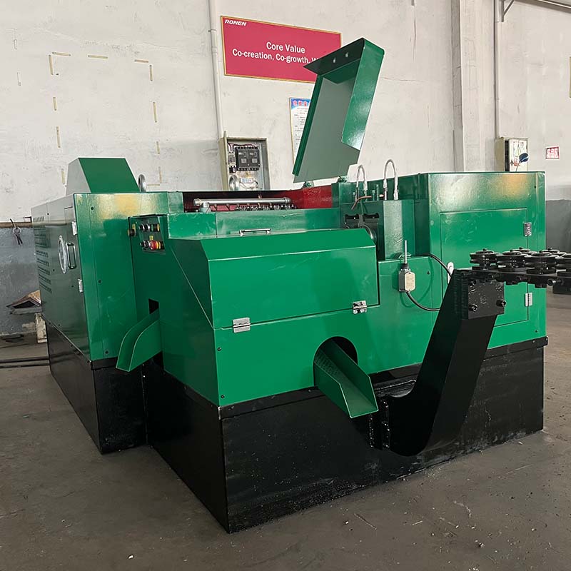 De automatische zeskantmoermachine van Ronen® kan automatisch beginnen te draaien zodra deze is ingesteld. Het snijdt eenvoudigweg de metalen staven op de gewenste maat en verandert ze vervolgens in zeshoekige moeren. Fabrieken die zeskantmoeren in grote hoeveelheden produceren, kiezen er doorgaans voor om deze machine aan te schaffen.