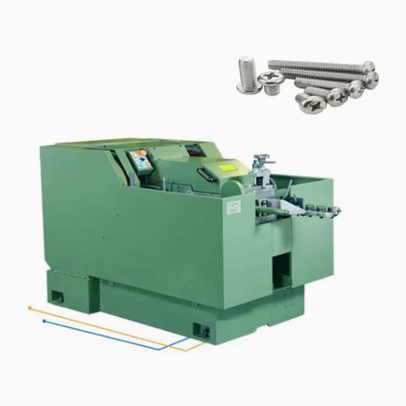 De machine van de schroef maakt draad in schroeven. Het legt de staaldraad rechten, snijdt deze op lengte, vormt de kop (schijfkop/zeshoekige kop/truss kop) en rolt de draad. Het basismodel vereist een operator; Het geautomatiseerde model kan met zeer weinig toezicht werken.
